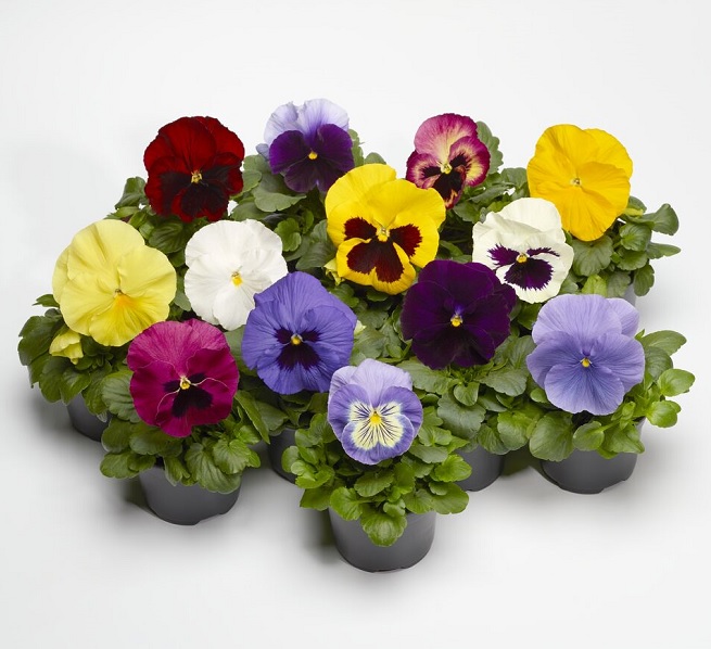 Виола крупноцветковая Фино F1. Серия Fino - новая серия крупноцветковой виолы. Характеризуется сильным базальным ветвлением и устойчивостью к вытягиванию. Серия идеальна для производства в кассетах и горшках диаметром 9-11 см. Сильная и дружная виола хорошо подходит для продажи рассады весной и ранней осенью.