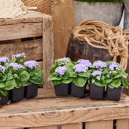 Агератум Кона F1 (Ageratum houstonianum Kona) - суперкомпактный агератум с генетически обусловленной карликовостью побегов.
