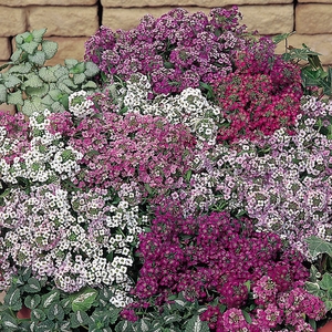 Алиссум Мэджик циклес микс. Яркая смесь с медовым запахом для ковровых цветников и обрамления цветочных бордюров.Растение невысокое, до 15 см. Образует плотный, стелющийся ковёр. Цветы мелкие многочисленные. Цветет с июня до осени. Для непрерывного цветения периодически удаляют увядшие цветы и плоды. Используют для обрамления клумб, балконных ящиков, на каменистых горках, рокариях.