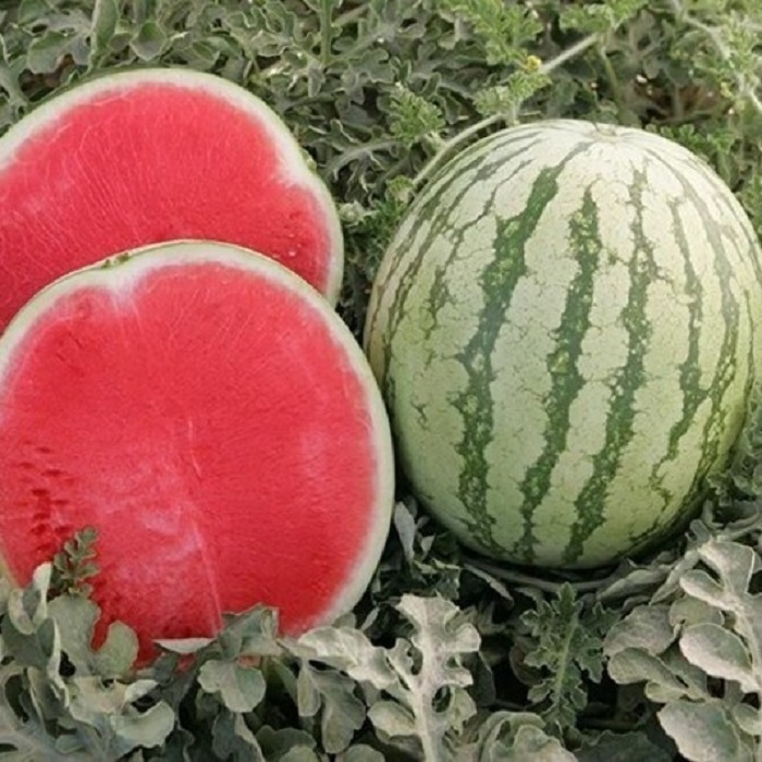 • Плоды круглые, светло-зеленые с тонкими темно-зелеными полосами, массой плода 6-7  кг.
