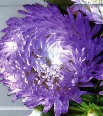 Астра пионовидная Дюшес блю энд вайт. Куст колонновидной формы, ветвистый, высотой 70 см. Соцветия бело-голубые, густомахровые, 8-10 см в диаметре. Цветет август-сентябрь. Используют для посадки в сборные цветники группами, на рабатки - рядами и для срезки.