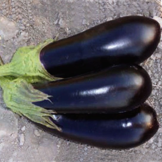 • Яркие тёмно-фиолетовые грушевидные плоды длиной 20-25 см и массой до 250 г