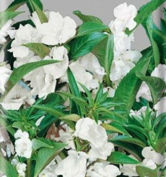 Бальзамин Том Самб белый. Компактный куст с густой листвой, высотой около 30-45 см. Цветы очень изящные белые. Цветет обильно с июня по сентябрь. Используют для клумб, рабаток, на срезку и как горшечную культуру.