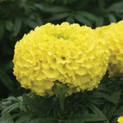 Бархатцы прямостоячие Дюн (Tagetes erecta Dune). Раннецветущий тагетес среднего размера.