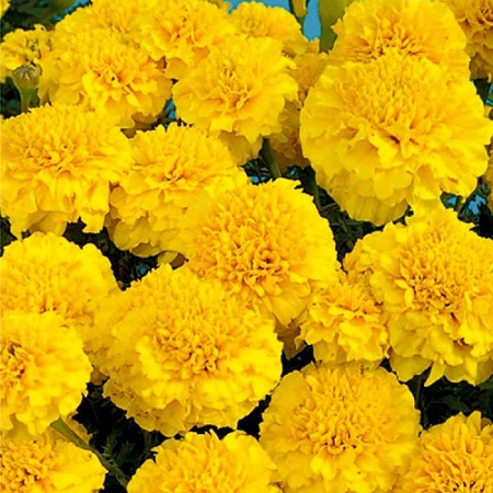 Бархатцы отклоненные махровые Бой золотые. Куст компактный, высотой 20 см, густоветвистый. Соцветия гвоздиковидные, махровые, диаметром 3,5-4,5 см. Цветёт с июня по август. Используют для клумб, рабаток, бордюров  и создания декоративных пятен.