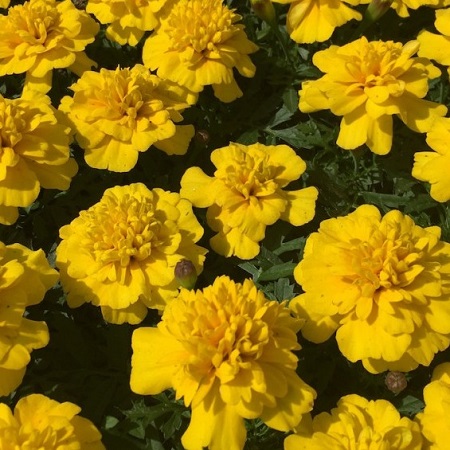 Бархатцы отклоненные махровые Брокад Еллоу. Однолетнее растение высотой 20-25 см. Куст раскидистый и ветвистый. Соцветия крупные, диаметром 3-4см, махровые, золотисто- желтого цвета. Растение свето- и теплолюбивое, предпочитает солнечные места, не переносит заморозков. Обильно цветет с июня по сентябрь. Используют для клумб, рабаток, бордюров и балконов.