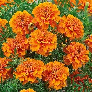 Бархатцы отклоненные махровые Мандарин - бархатцы из серии Бонита. Куст шаровидный, густоветвистый, высотой 22-25 см. Соцветия гвоздиковидные, махровые, из одних темно-оранжевых язычковых цветков. Цветет с июля по октябрь. Используют для клумб, рабаток, бордюров и украшения балконов.
