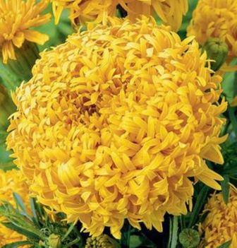 Бархатцы прямостоячие Фантастик золотые. Растение высотой около 70 см. Шарообразные соцветия-корзинки, диаметром до 10 см, жёлто-оранжевой окраски. Обильно и продолжительно цветет с июля до заморозков. Чтобы продлить цветение, необходимо удалять увядшие цветки. Используют для клумб, рабаток, высоких групп и срезки.