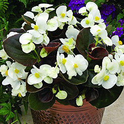 Бегония вечноцветущая Бада Бум (Begonia semperflorens Bada Boom). Серия вечноцветущей бегонии с бронзовыми листьями.