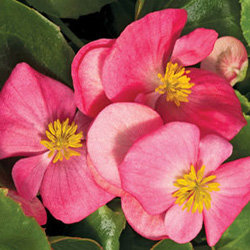 Бегония вечноцветущая зеленолистная Бада Бинг. Глянцевая насыщенно-зеленая листва и цветки ярких окрасок! Прекрасная раннецветущая серия с однородным габитусом и хорошим ветвлением – быстро заполняет горшок/кассету.