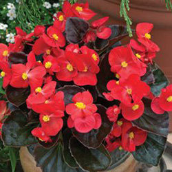 Бегония вечноцветущая Бада Бум (Begonia semperflorens Bada Boom). Серия вечноцветущей бегонии с бронзовыми листьями.
