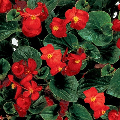 Бегония вечноцветущая зеленолистная Инферно (Begonia x hybrida Inferno). Серия гибридной бегонии, идеальна для ландшафта