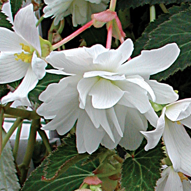 Бегония ампельная Шансон (Begonia tuberhybrida Chanson). Непревзойденная по декоративности ампельная клубневая бегония с махровыми и полумахровыми камелиевидными цветками.
