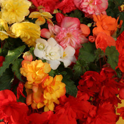 Бегония ампельная Шансон (Begonia tuberhybrida Chanson). Непревзойденная по декоративности ампельная клубневая бегония с махровыми и полумахровыми камелиевидными цветками.