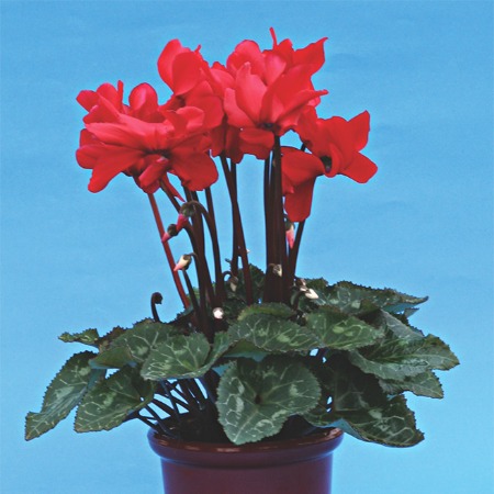 Цикламен персидский многолепестковый. Особая группа цикламенов, предназначенных для срезки, с прочными и длинными цветоносами (до 30 см).