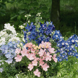 Дельфиниум грандифлора Саммер (Delphinium grandiflorum Summer). Серия крупноцветковых дельфиниумов отличается длительным периодом цветения (июнь-сентябрь) в первый год посадки рассады.