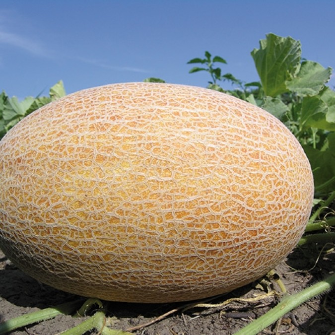 • Плод эллиптический, желтый, гладкий, с плотной средней толщины сеткой.