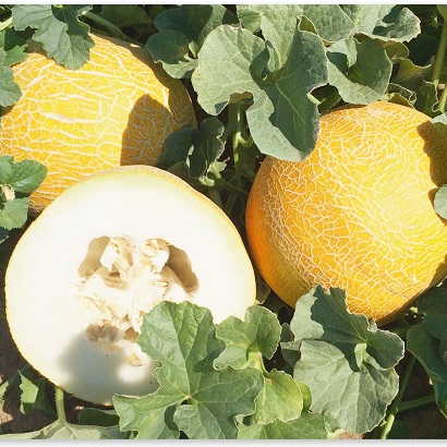 • Плод округлый, желтый с зеленоватым оттенком, гладкий, с сеткой средней толщины и плотности.