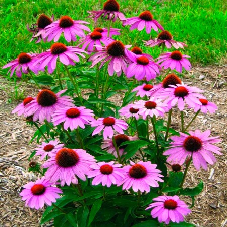 Эхинацея пурпурная ― это травянистое корневищное растение, многолетник. Неприхотливое, с прямыми стеблями, соцветие - корзинка лилового цвета. Листья шершавые, зеленые. Это надежное растение для бордюра, хорошо стоит в срезке. Высота до 100-130 см. цветет с июля по сентябрь.