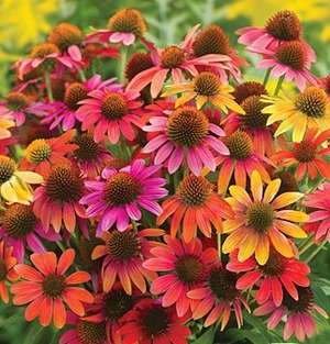 Эхинацея Шайенн Спирит (Echinacea x hybrida Cheyenne Spirit). Серия отличается способностью зацветать в год посева, благодаря быстрому развитию растений.
