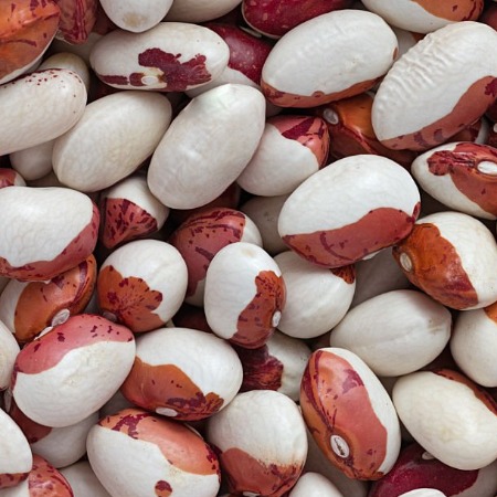 • В стручке по 8-12 плоско-цилиндрических зерен, размером 9-11 мм. Окраска семян – белая, с красными пятнами, расположенными в районе глазка.