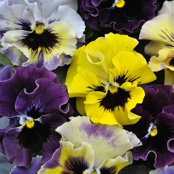Виола рогатая Фризл Сизл Мини (Viola cornuta Frizzle Sizzle Mini Mixture) - великолепная серия виолы рогатой с причудливой формой цветков.