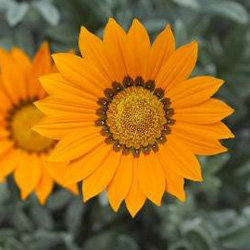 Газания Фрости Кисс (Gazania rigens Frosty Kiss). Самая раннецветущая и наиболее однородная серия с серебряными листьями, представленная на рынке.