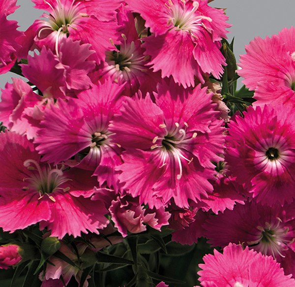 Гвоздика гибридная Чиба (Dianthus interspecific Chiba).  Межвидовой гибрид гвоздики серии Чиба(Chiba) имеет суперраннее цветение и очень компактный и в то же время густой мощный куст.