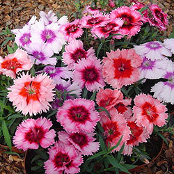 Гвоздика китайская Диана (Dianthus chinensis Diana) Низкорослый компактный гибрид сочетает в себе раннее цветение и компактный габитус с большими одиночными цветками и широким выбором окрасок.