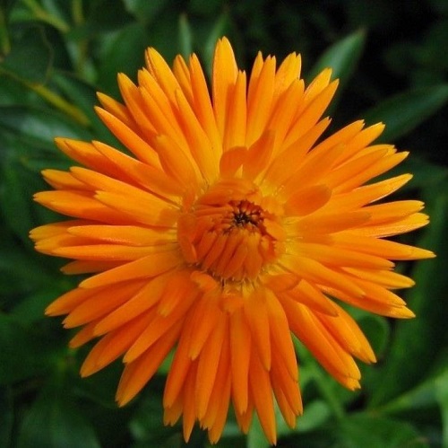Календула махровая Радио. Куст густоветвистый, высотой около 50 см. Соцветия махровые, оранжевые. Обильно цветет в июле-сентябре. Используют для клумб, рабаток, бордюров и срезки. Обладает лекарственными свойствами.