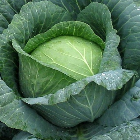 Капуста белокочанная Орбита F1. Розетка листьев приподнятая до горизонтальной. Длина наружной кочерыги средняя. Лист среднего размера, с сильным восковым налетом, округлый, вогнутый. Кочан округло-плоской формы, очень плотный, на разрезе желтоватый, кроющие листья зеленые без антоциановой окраски. Внутренняя кочерыга средней длины. Масса кочана 2,0-3,4 кг.
