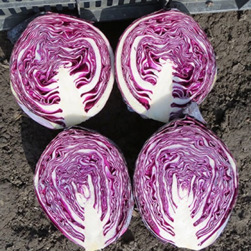 • Кочан покрытый, овальный, плотный, на разрезе темно-фиолетовый. Наружная кочерыга короткая, внутренняя - короткая до средней длины.