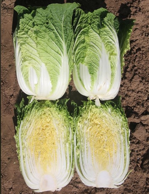 • Кочан узкопродолговатый, полуоткрытый, рыхлый, на разрезе жёлтый.