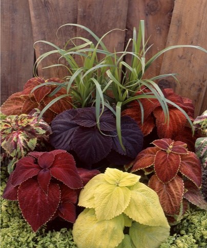 Колеус Джиант Эксибишен (Coleus blumei Giant Exhibition™) - серия колеусов высотой до 50 см с хорошим ветвлением и большими широкими листьями.