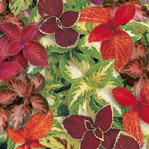 • В смесь входят колеусы серии Корал Санрайз, Джейд, Мозаик, Скарлет, Сансет и Вельвет Ред.