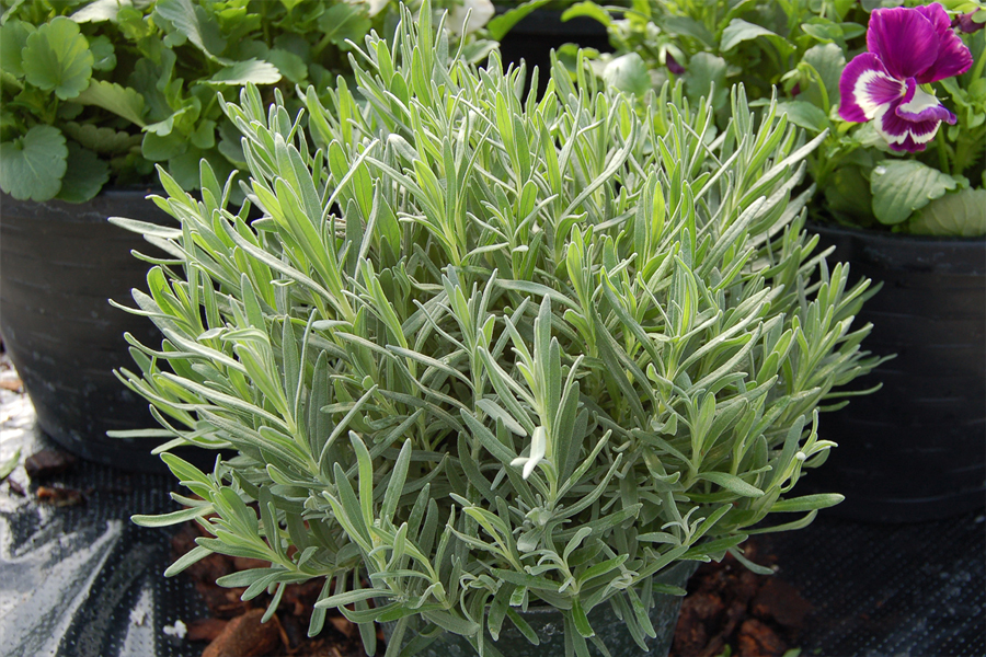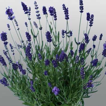 Лаванда узколистная Промис (Lavandula angustifolia Promise) - новый сорт обыкновенной или настоящей лаванды с серебристо-серой ароматной листвой и обильным цветением фиолетово-голубых цветов на высоких тонких стеблях.
