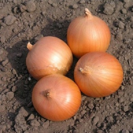 • Луковица округлая, слегка каплевидная, интенсивной золотисто-коричневой окраски, образует мощные внешние чешуи с тонкой шейкой. Внутренние чешуи белые, толстые, очень сочные и хрустящие.
