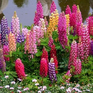 Люпин низкорослый Минарет. Растение высотой около 50 см. Листья красивые, пальчато-сложные, на длинных черешках. Кистевидные соцветия розового цвета. Цветение обильное в июне-июле. Используют для бордюров, рабаток, миксбордеров.