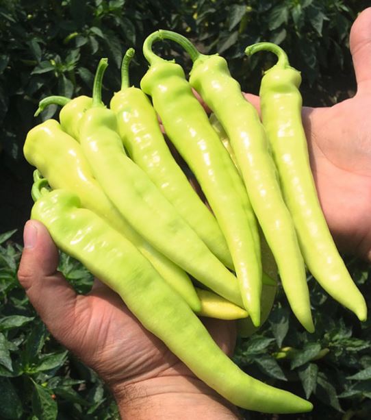 Перец острый Ангара F1. Новый раннеспелый гибрид (период вегетации 80 дней) острого перца венгерского типа. Растение мощное, полураскидистое, с хорошей укрываемостью плодов. Плоды узкоконусовидные, гладкие, глянцевые, с приятным равномерным желто-зеленым окрасом в технической спелости. Соотношение длины: ширины - 18:4. Толщина стенки - 3 мм. Острота по 10-бальной шкале: 4.  Предназначен для потребления в свежем виде и цельноплодного консервирования.