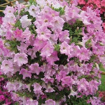 Даймонд Перли Шейдз F1 ампельная петуния типа «сурфиния». Новейший сорт, выведенный фирмой «Черны», является первой, действительно крупноцветковой (grandiflora) петунией, которая выращивается из семян.