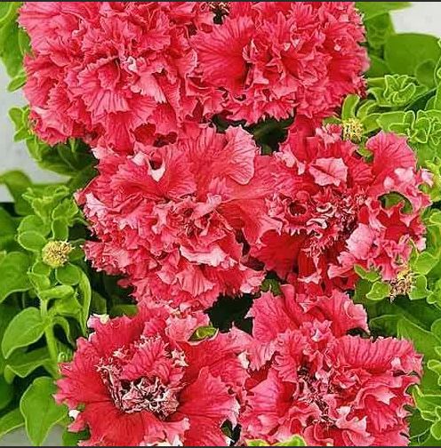 Петуния махровая Дабл Каскад. Раннецветущая серия из превосходных, хорошо сформированных компактных растений. Махровые гвоздикообразные цветки до 13 см в диаметре. Наиболее ранняя в цветении серия с прекрасными характеристиками роста и великолепным ветвлением. Крупные (10-13 см в диаметре) цветки очень устойчивы к неблагоприятным погодным условиям и долго сохраняют свою декоративность. Цветки махровые, с сильно гофрированными лепестками. Цветущее растение имеет необыкновенно эффектный вид. Петунии этой серии используются в оформлении клумб, вазонов, балконных ящиков.
