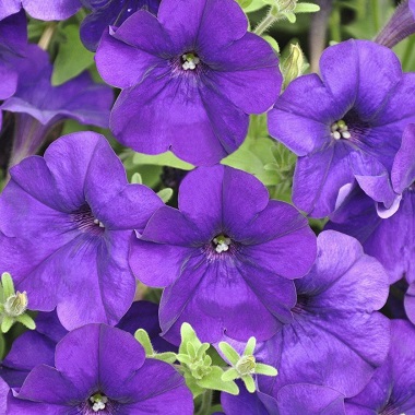 Петуния Альдерман. Красивые крупные сине-фиолетовые цветы украшают плотный кустик высотой около 30 см. Обильно цветет с июля по сентябрь. Используют в клумбах для ярких групп, на бордюрах, рабатках, в подвесных корзинках.