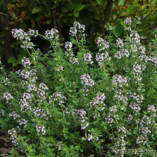 Тимьян обыкновенный. Сильно ветвящееся лекарственное растение высотой 20-25 см. Лист мелкий, овальной формы, зеленый, очень ароматный. Цветки розово-фиолетовые, в ложных мутовках, образуют прерывистое головчатое соцветие. Цветет в зависимости от обитания с конца мая до конца лета. Масса товарной части до 60 г. Является отличной приправой.  Растение — один из лучших медоносов.