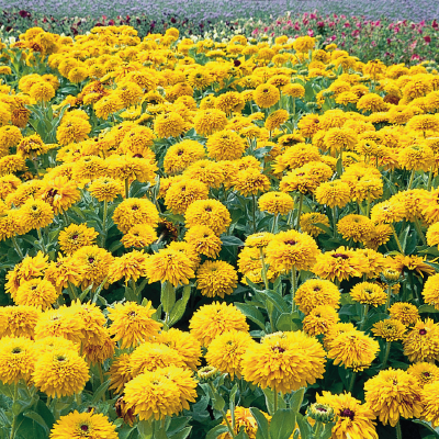 • Формирует многочисленные ярко-желтые махровые соцветия диаметром 10 см.