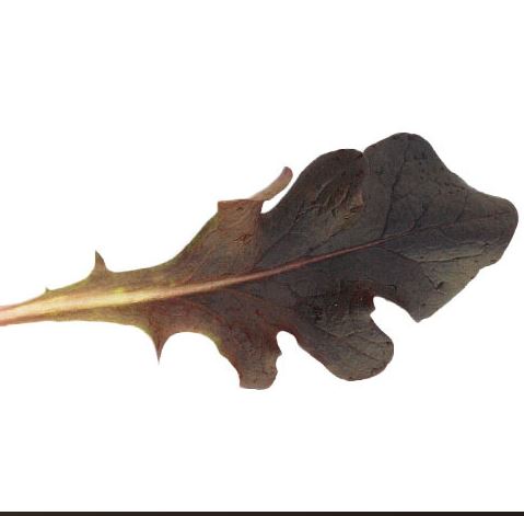 • Листовая пластинка треугольная, темно-красная, с антоциановой окраской, гладкий, сильно рассеченный по краю, без надрезов.