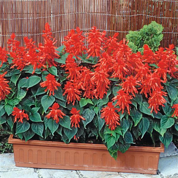 Сальвия сверкающая Лайтхауз (Salvia splendens Lighthousе). Высокорослая сальвия образует растения высотой 60 см, с длинными колосовидными соцветиями и темно-зеленой листвой.