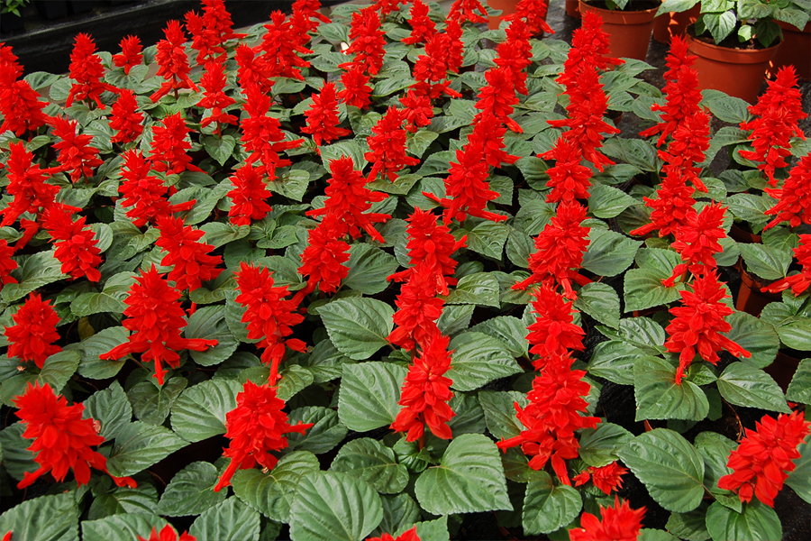 Сальвия сверкающая Ред Алерт (Salvia splendens Red Alert)  обладает хорошей силой роста, выровненным компактным габитусом растений, демонстрирует раннее цветение, что делает её отличным сортом для профессионального озеленения.