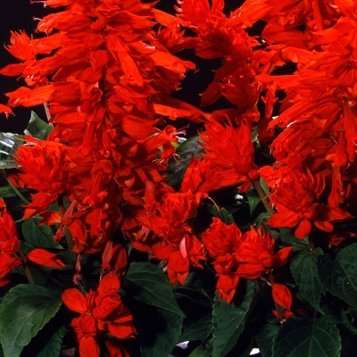 Сальвия сверкающая Скарлет Пикколо. Цветки собраны в колосовидные соцветия. Венчик и чашечка огненно-красные. Цветет обильно с июня до первых осенних заморозков.  Сальвия требуют солнечного местоположения. Предпочитает умеренно плодородные и рыхлые почвы, на сырых и хорошо удобренных цветет слабо. Сальвия очень эффектна в парадных и смешанных композициях, клумбах, рабатках.