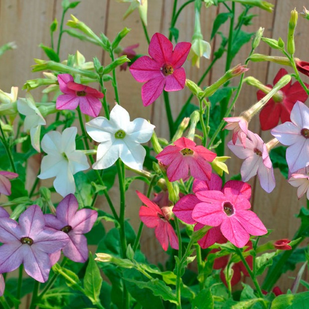 Табак Душистый Гипноз. Растение высотой до 75 см. Великолепные цветовые сочетания цветков с дивным ароматом, который особенно чувствуется тёплым, летним вечером. Используют группами на газонах, для оформления клумб.