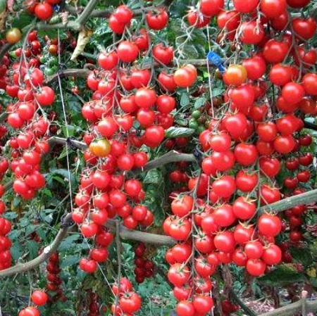 Томат Эльф F1 ( инкруст. семена). Раннеспелый (85-90 дней), компактный габитус, с укороченными междоузлиями. Масса плода 20-25 г. Плоды округлые, гладкие, плотные, собраны в красивую плотную, прочную кисть по 12-15 штук, пригодны для реализации на подложке. Зрелые плоды темно-красной окраски (ликопин 7,9 мг/100 г), с глянцевым блеском, отличные вкусовые качества. Урожайность 5,5-6,0 кг/м2 (на светокультуре до 15 кг/м2 ). Устойчив к ВТМ, фузариозному увяданию, кладоспориозу, растрескиванию и осыпанию.  Рекомендуется для потребления в свежем виде и цельноплодного консервировании.